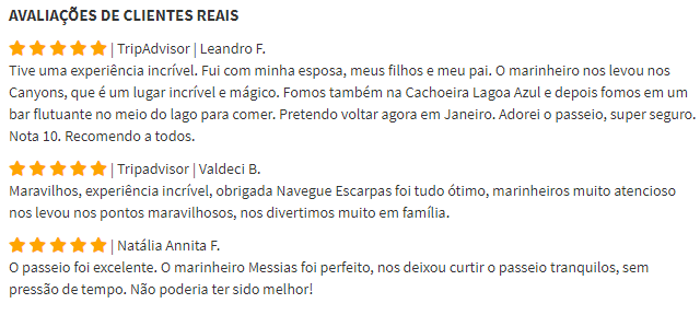 Visitamos os principais pontos turísticos do Lago de Furnas, em Capitólio/MG. Vamos às seguintes cachoeiras: - Canyons; - Lagoa Azul; - Cascatinha; - Vale dos Tucanos e - Cachoeirinha da Ilha. Temos duas opções de parada para almoço: bar flutuante ou restaurante com cervejaria artesanal.