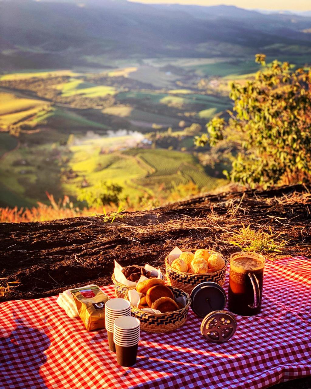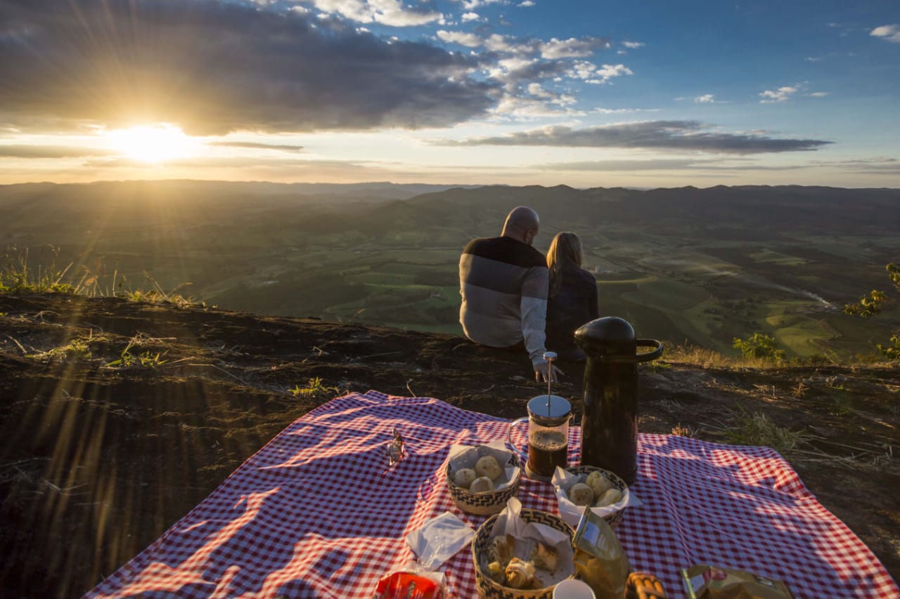 Um lindo passeio contemplativo de final de tarde, quando temos aquela linda visão do sol se pondo, na Pedra a 1.300 metros de altura, saboreando um delicioso piquenique.