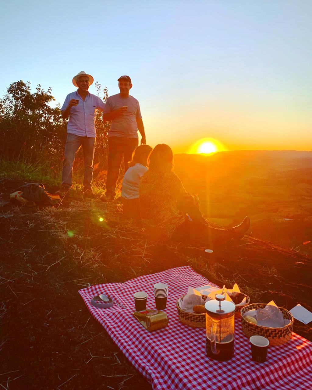 Saímos de São Lourenço as 15hs com destino a fazenda em Carmo de Minas. La degustamos um piquenique e aguardamos o sol se por.
