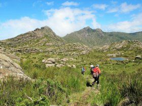 Partida e retorno: local de hospedagem ou agência Partida: 07h Retorno: 17h Trilha com início na portaria do Parque Nacional Itatiaia utilizando a abertura do trecho que dá acesso a Cachoeira do Aiuruoca, passando pelo Abrigo Rebouças, totalizando 11 quilômetros de trilhas. A esquerda quando começa a subir pode-se avistar a Pedra do Camelo, a Pedra Furada e as cristas da Serra Fina.