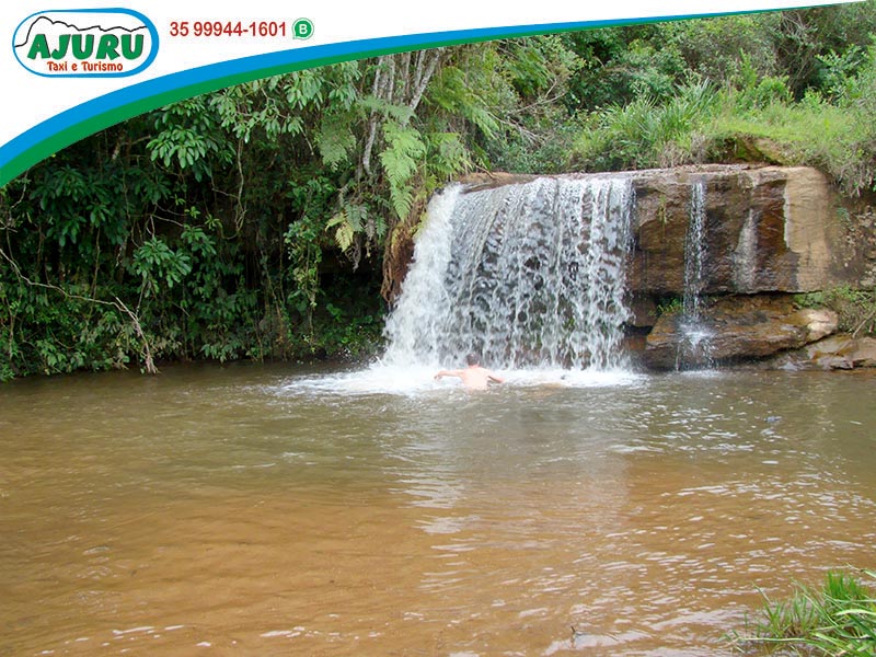 Saída da sede da Ajuru Táxi e Turismo às 9h Seguimos em direção à Fazenda da Lage que fica há 17km da cidade, sendo 9km de asfalo e 8 de terra. No trevo de Aiuruoca, passamos pelo escrito Aiuruoca para que todos possam tirar fotos com o nome da cidade. Qualquer pessoa pode chegar ali por que o carro para ao lado. Visitamos a Cachoeira Duas Quedas onde é possível levar, inclusive, cadeirantes debaixo da queda para duchas incríveis e com toda segurança. Seguimos para a Cachoeira da Lage que normalmente o pessoal gosta mais de ver do que de entrar mas a mesma possui poço para banho também. Na fazenda da Lage é que é produzido o famoso queijo parmesão GOA e podemos visitar a fábrica e também comprar queijos ali. Após as compras, retornamos para a cidade com previsão de chegada às 17h na sede da Ajuru Táxi e Turismo.